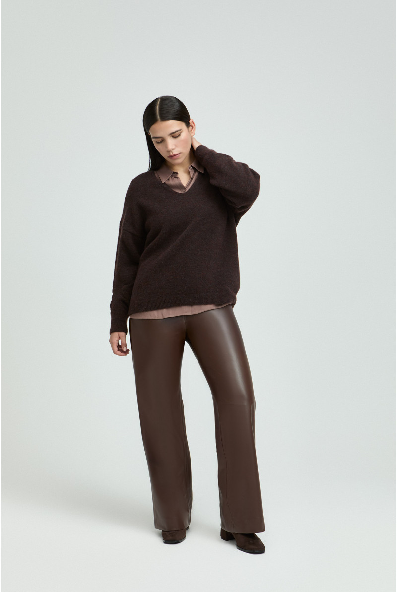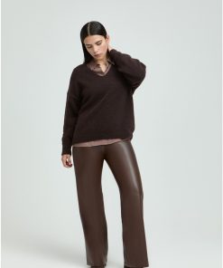 XANDRES Dames Kleding Soepele Broek Uit Faux Leather | Dark Chocolate